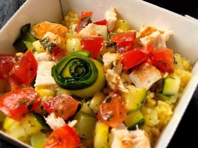 Riz basmati, Saumon fumé, concombre/ Torti, jambon serrano, tomate, parmesan/ Crudités, quinoa…