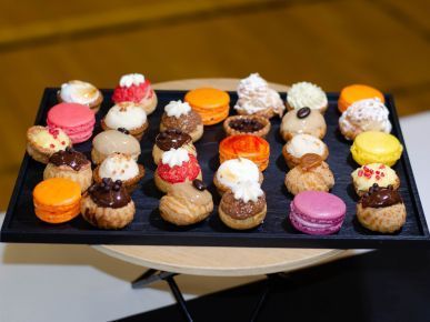 Mini -St Honoré, chocolat, café, caramel, craquelin framboise et crème vanille...