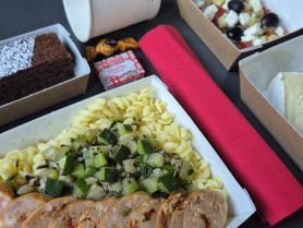 • Offrez à vos collaborateurs ou invités des pauses déjeuner savoureuses et équilibrées : des plateaux repas frais, raffinés et livrés directement sur votre lieu de travail.
